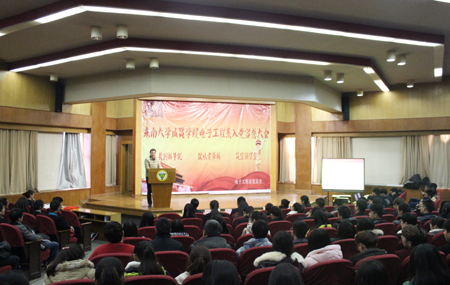 大会过程中,2013级自动化1班罗贤迪作为新党员代表发言,她向党组织表达决心:要提升思想政治修养,提高为人民、为同学服务的本领和能力,提高自己在专业领域的精深程度,充分发挥党员的先锋模范作用,促进学院各项工作的发展。2013级电子科学与技术1班何文旭同学作为党员班级导师发言,对2015级同学发出倡议:不带手机进课堂、诚信参加考试。电子工程系分团委书记宋奎及系学生会主席喻晨赟对党建微信平台作了详细的说明,并且现场演示扫码加微,介绍党建平台信息发布的类别和内容。